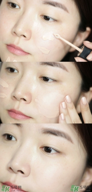 評測方法:取適量粉底液在指尖,均勻點涂在肌膚表面,再以指腹推開使粉底液均勻覆蓋面部肌膚,鼻翼、眼窩等細節(jié)處可以使用化妝刷精細涂抹,令妝容更精致。